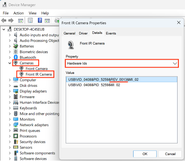 - Select [Hardware Ids] from the [Property] pulldown list.