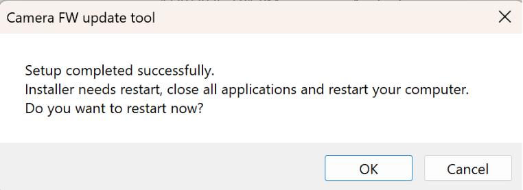 - If the following dialogs appear one after another, the update has been successfully completed. Click [OK]. The PC will restart automatically.
