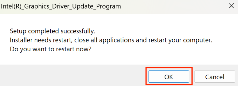 1. The following dialog appears, so click [OK]. The PC will restart.