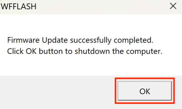 - If the following dialog appears, the update has been successfully completed. Click [OK] and it will shut down automatically.
