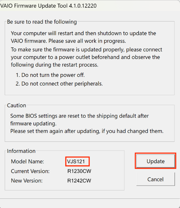 VJS121*, VJS141* “BIOS R1242CW” Update Program