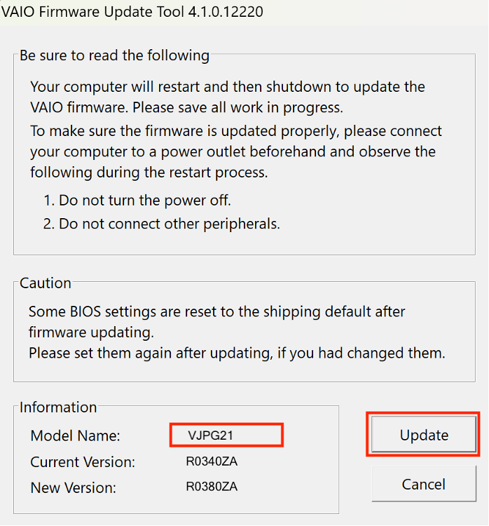- Make sure the AC adapter is connected and never turn off your computer while updating.