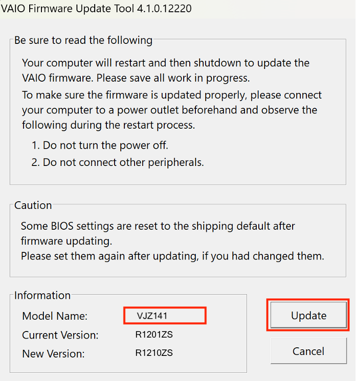 VJZ141, VJZ142 “BIOS R1210ZS” Update Program