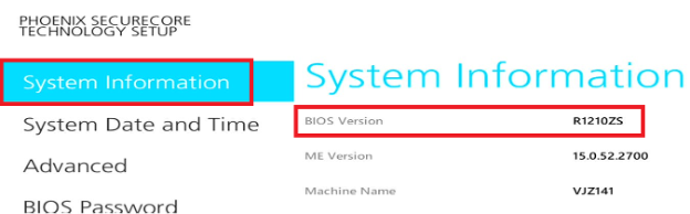 - If the BIOS Version in the System Information column shows “R1210ZS”, the update has been successful.